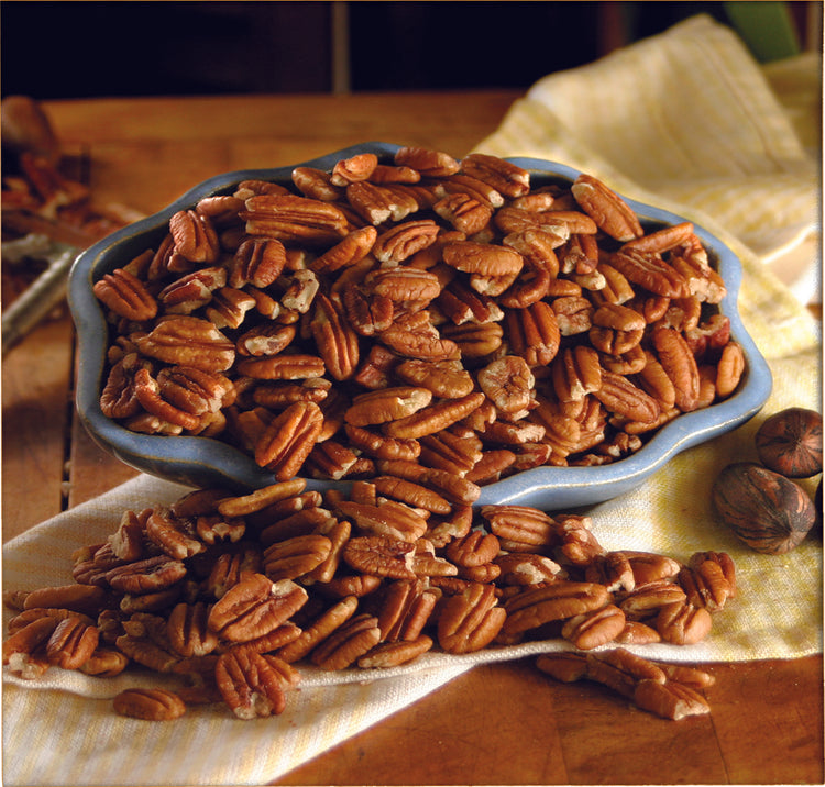 Combine 2 tablespoons of sugar, chili powder, and pepper. Add pecans, tossing to coat. Place pecans on a lightly greased cooking sheet. Bake at 350 degrees for 10 minutes stirring once.