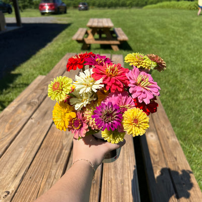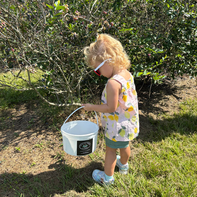 We provide everything you need for a great picking experience. Each guest receives a 1-gallon bucket for collecting berries, and you'll take your berries home in that same bucket. For flower picking, we provide shears and a stadium-sized cup to hold your bouquet. We also have cold water available and a pavilion when you get hot and need a break.